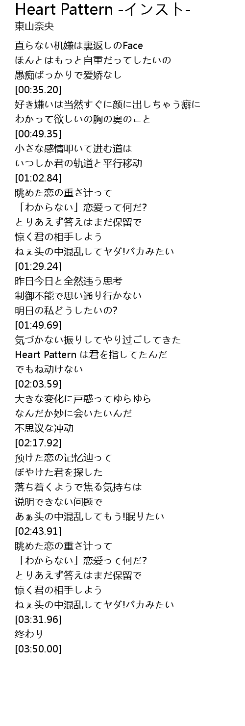 | [01:55.32] | Heart Pattern は君を指してたんだ |