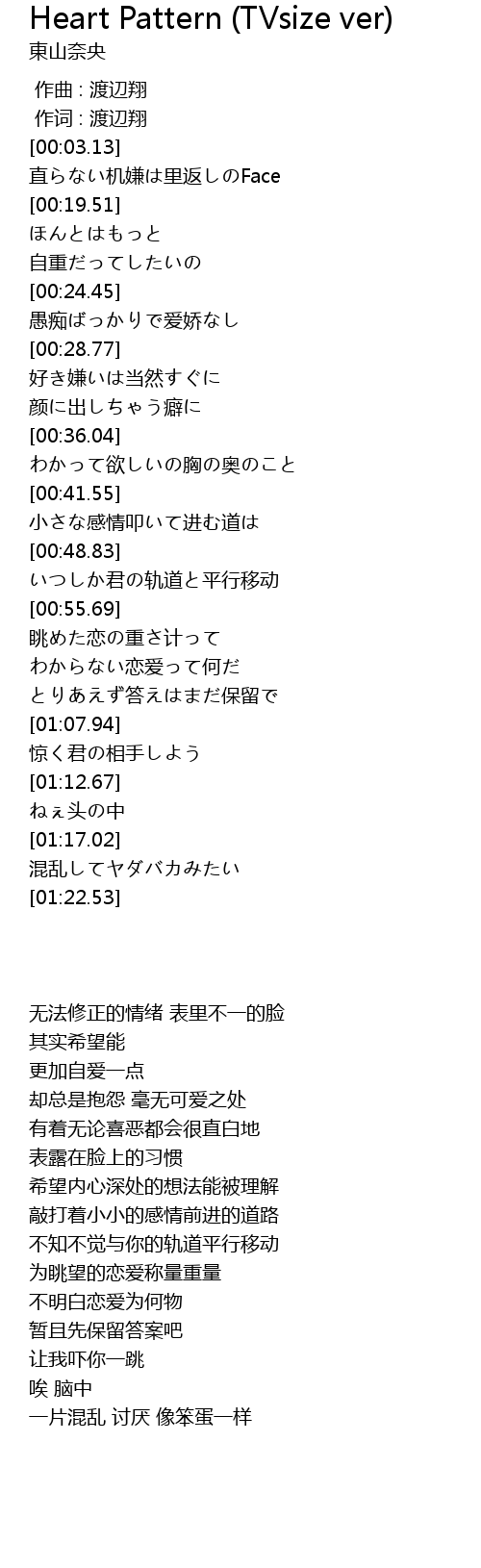 | [00:15.44] | 直らない机嫌は里返しのFace |