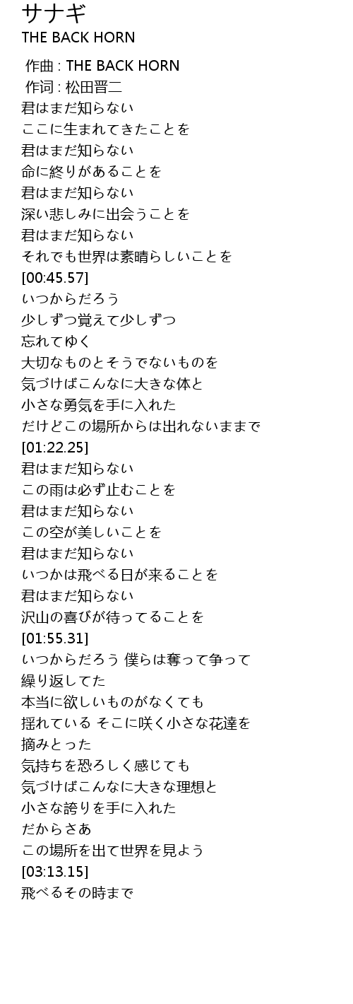 | [00:00.00] | 作曲 : THE BACK HORN |
