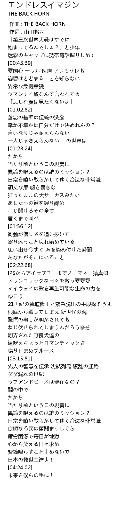 | [00:00.00] | 作曲 : THE BACK HORN |
