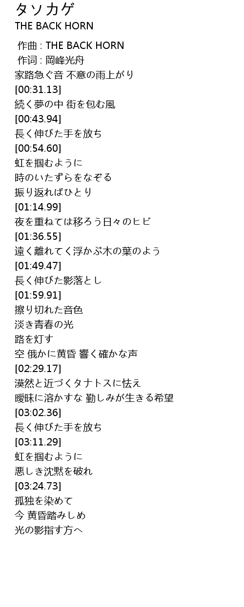 | [00:00.00] | 作曲 : THE BACK HORN |
