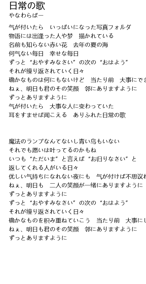 | 确かなものは何にもないけど 当たり前 大事にできてるかな? | |