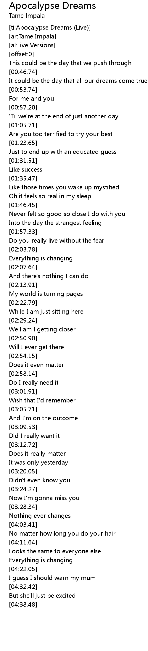 [ti:Apocalypse Dreams (Live)] |