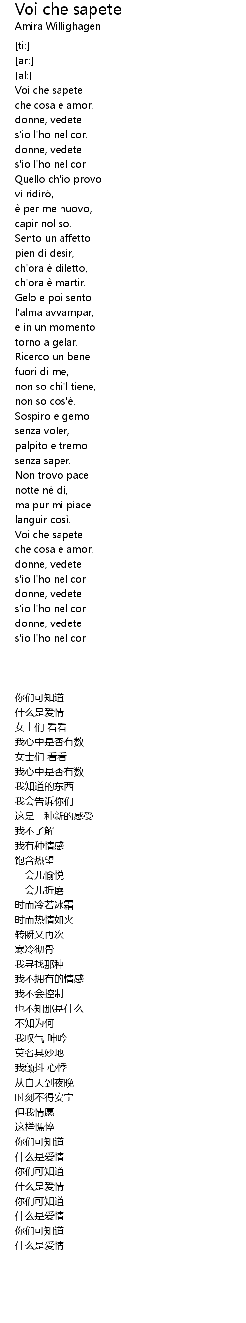 - Voi che sapete