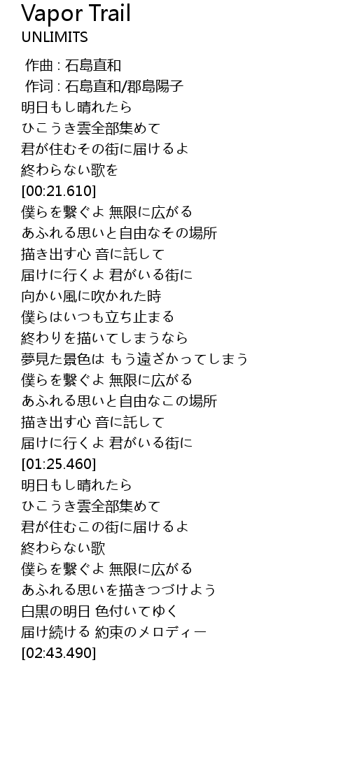 | [02:22.330] | 僕らを繋ぐよ 無限に広がる |