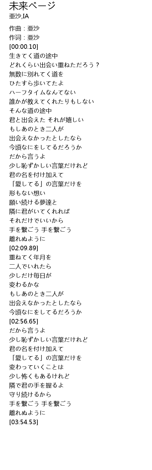 | [01:56.74] | 手を繋ごう 手を繋ごう |