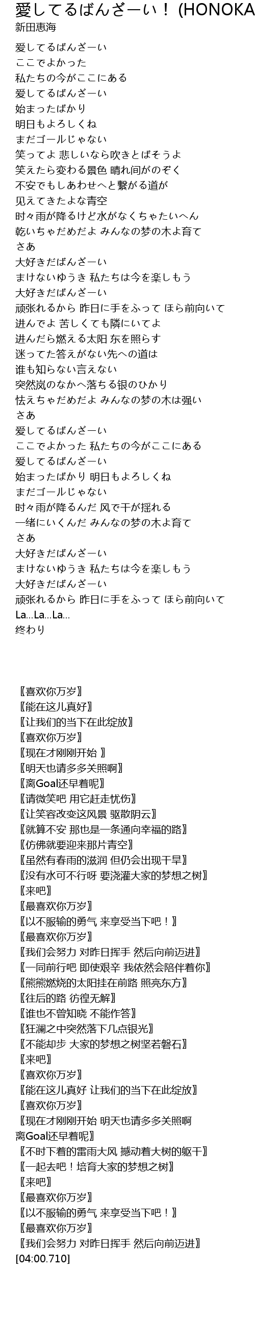 | [01:18.800] | まけないゆうき 私たちは今を楽しもう |