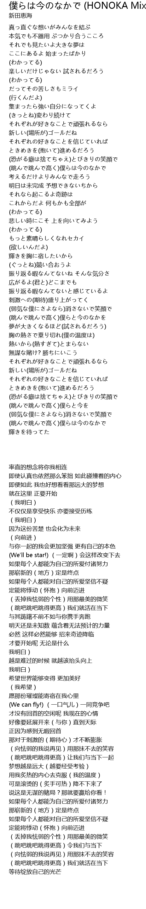 | Song | 僕らは今のなかで (HONOKA Mix) |