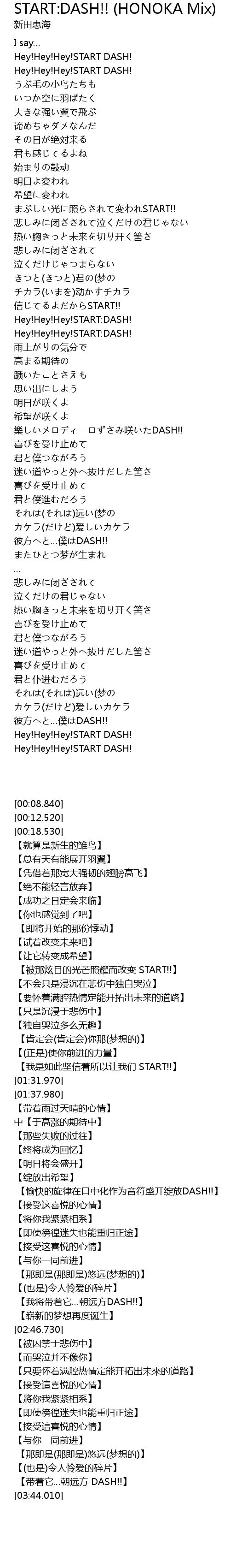| [03:44.010] | Hey!Hey!Hey!START DASH! |