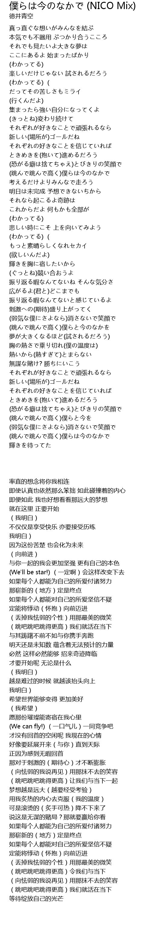 | [01:26.35] | (跳んで跳んで高く)僕らは今のなかで |
