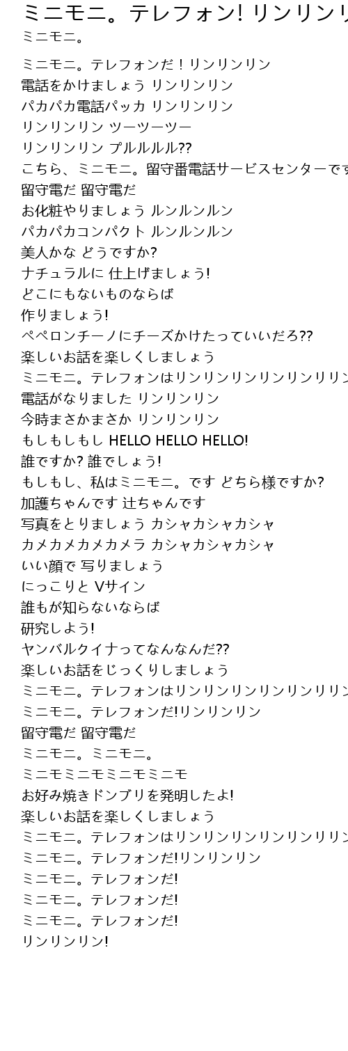| [02:41.59] | ミニモニ。テレフォンはリンリンリンリンリンリリン |