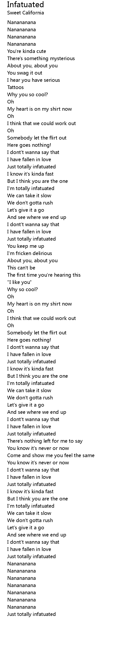I'm totally infatuated |