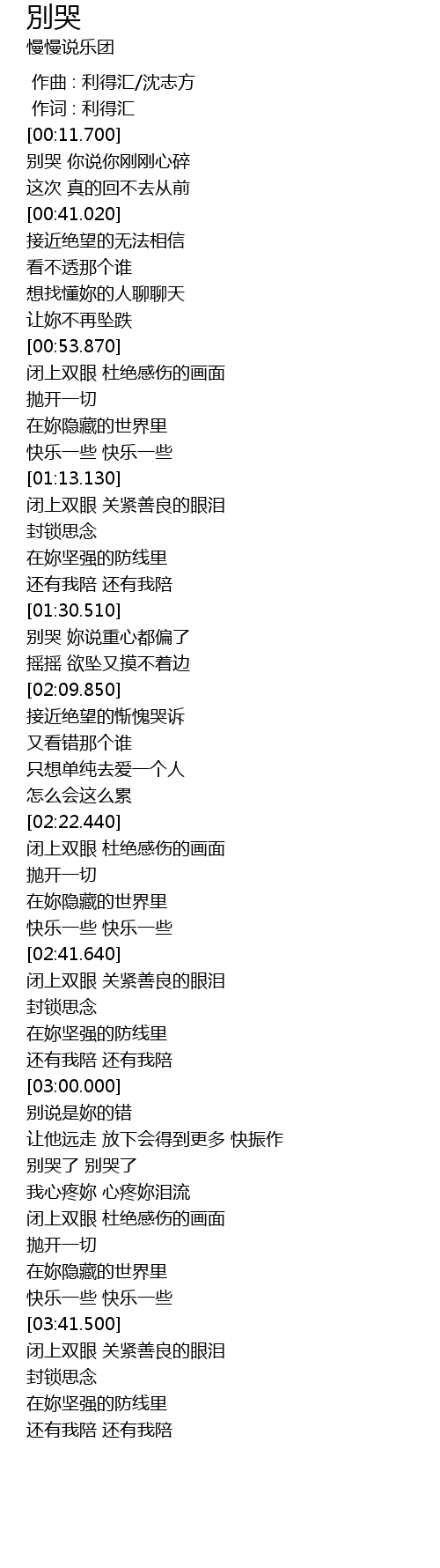| [00:00.00] | 作曲 : 利得汇/沈志方 |