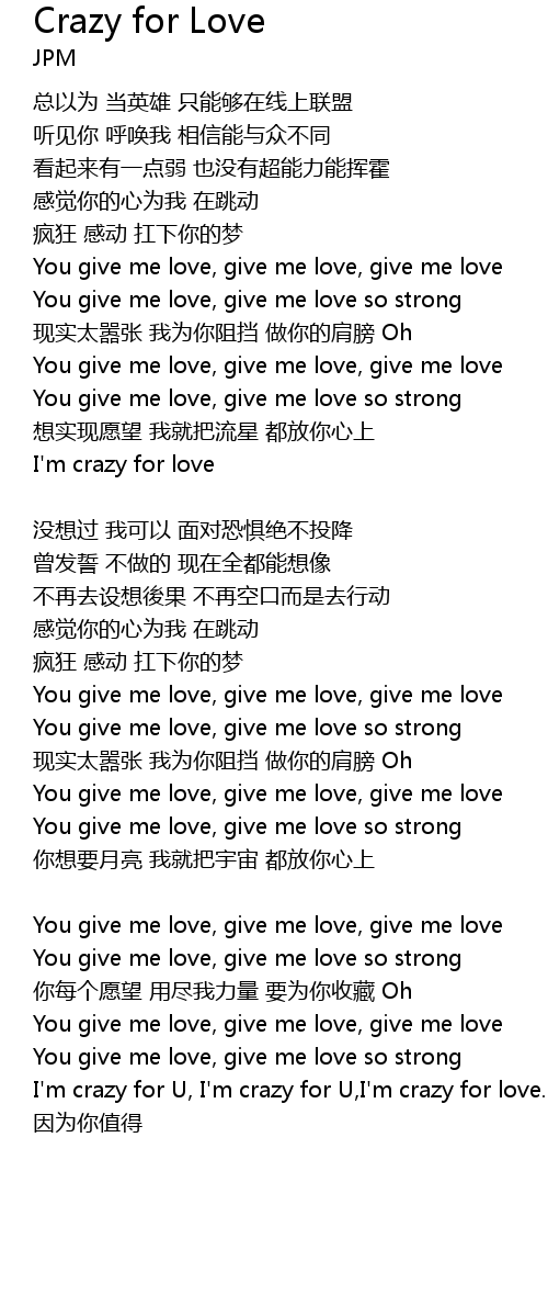 | I'm crazy for U, I'm crazy for U,I'm crazy for love. | |