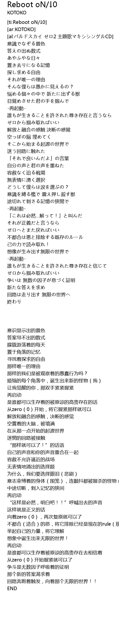| [ti:Reboot oN/↓0] | |