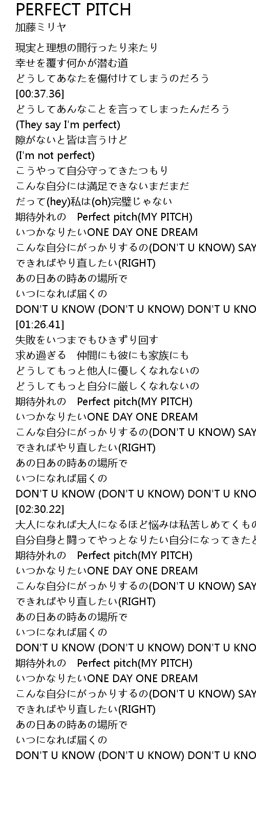 | [00:58.61] | だって(hey)私は(oh)完璧じゃない |