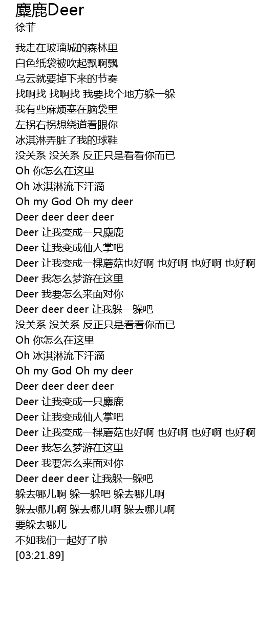 | [02:39.39] | Deer deer deer 让我躲一躲吧 |