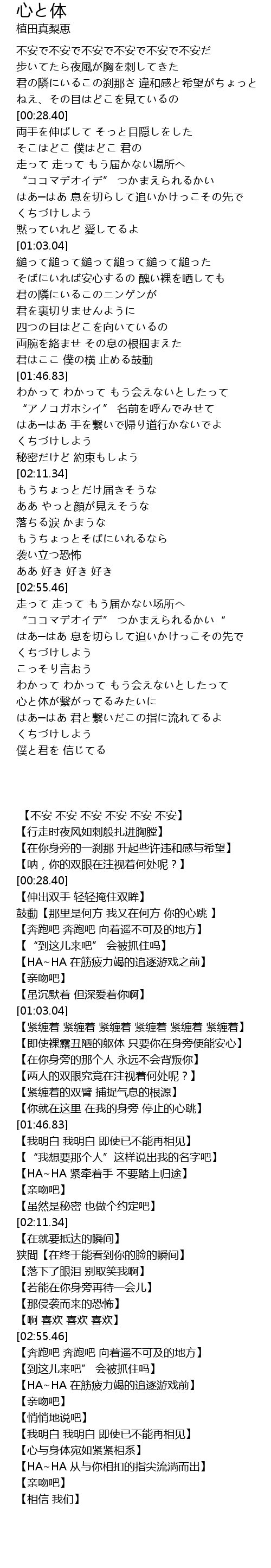 | [01:36.35] | 両腕を絡ませ その息の根掴まえた |