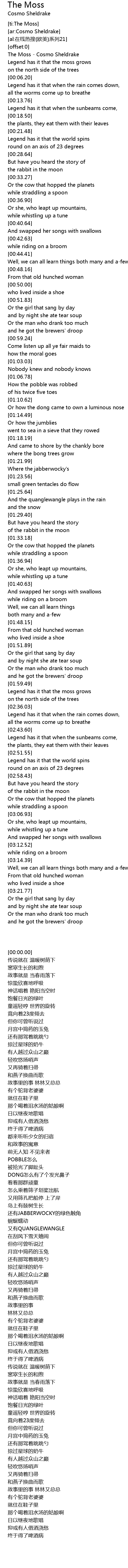 | [00:00.00] | The Moss - Cosmo Sheldrake |