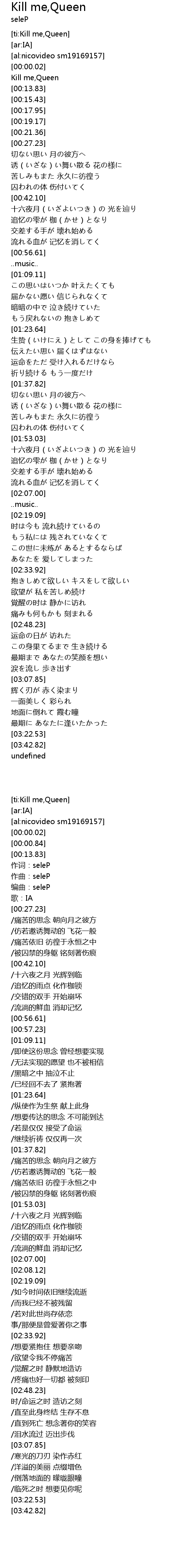 | [00:00.84] | Kill me, Queen |