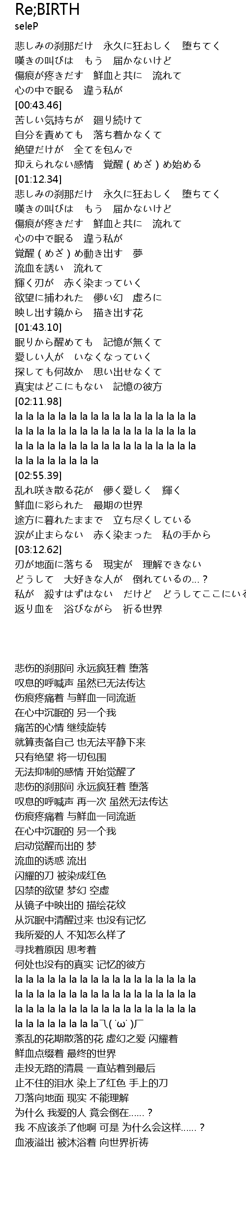 | [03:02.37] | 鮮血に彩られた 最期の世界 |