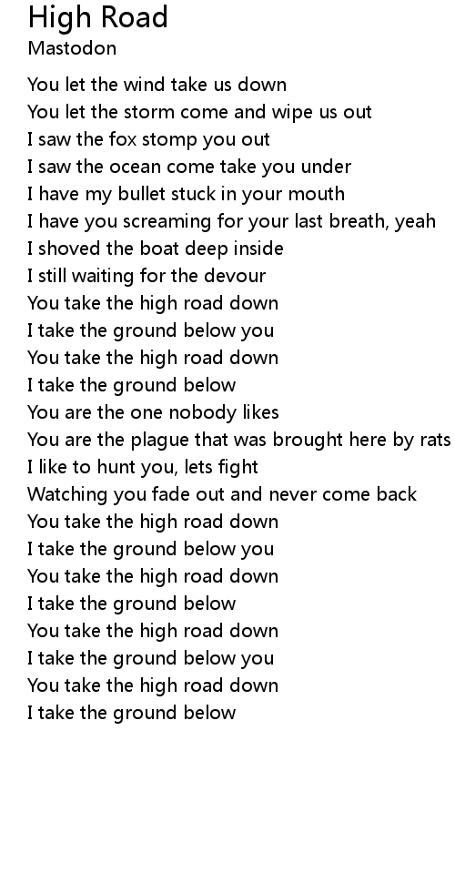 | You take the high road down | |