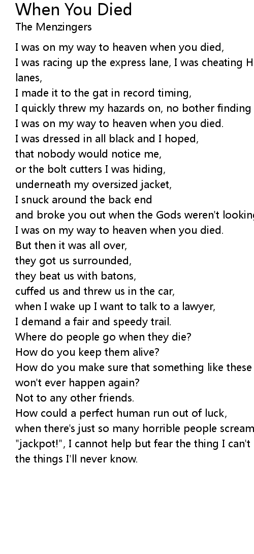 I was on my way to heaven when you died, |