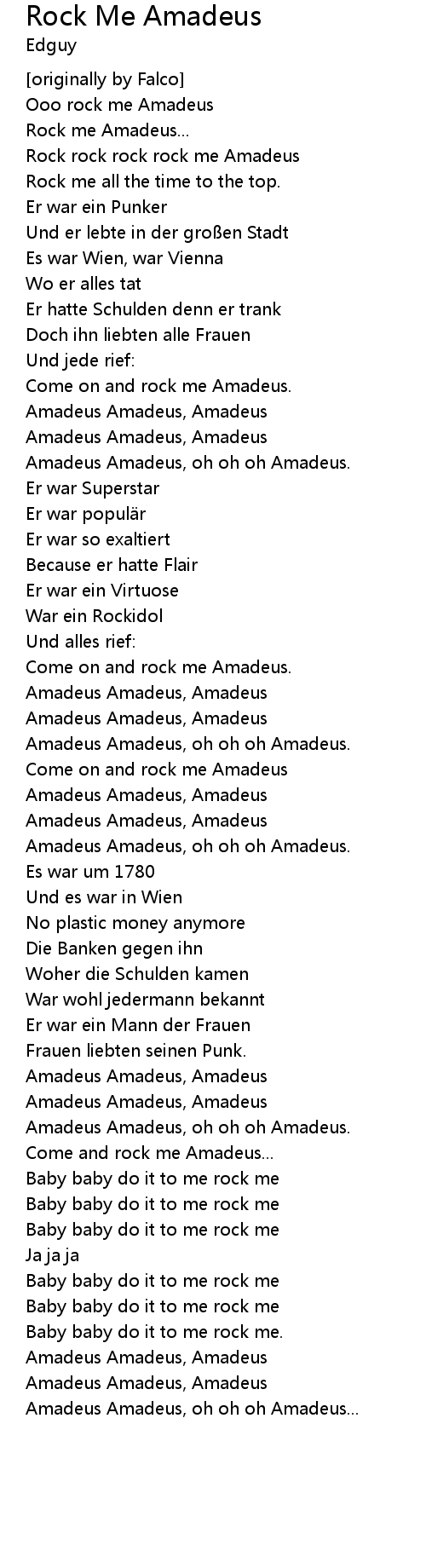 | Amadeus Amadeus, oh oh oh Amadeus. | |