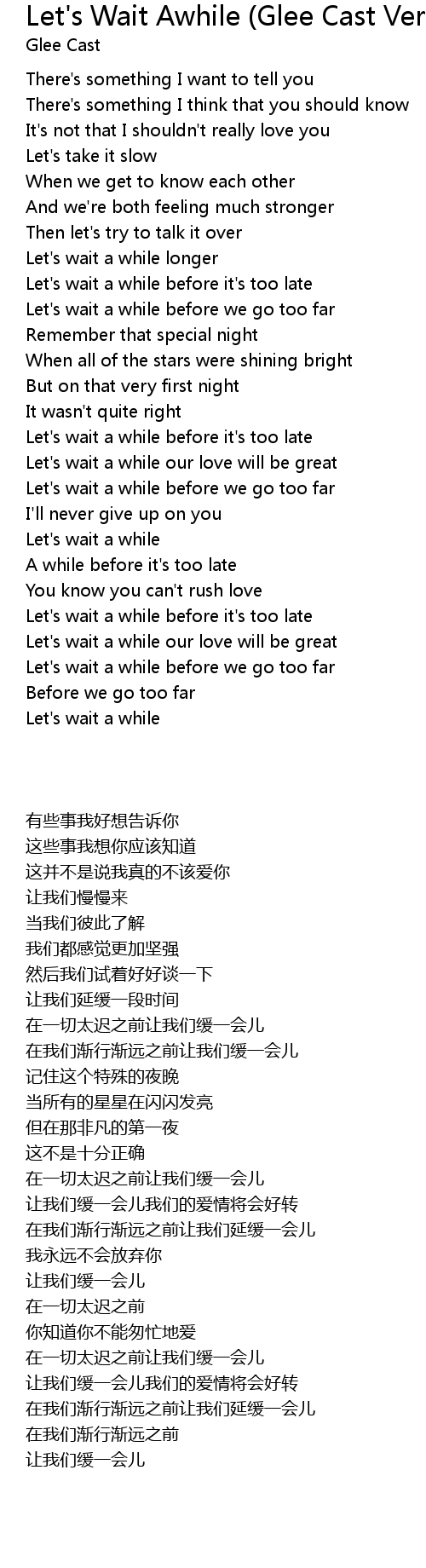 Let's wait a while our love will be great |