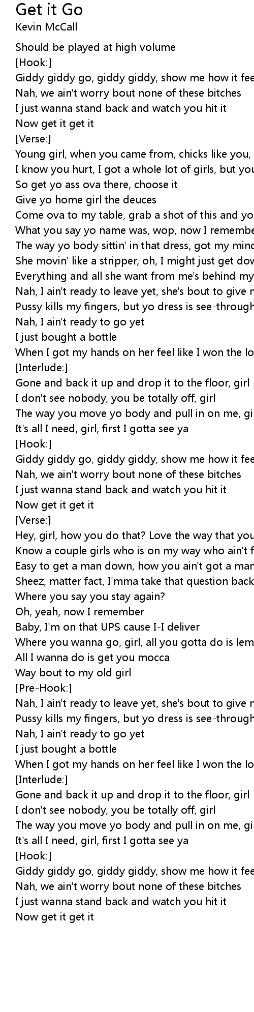 Giddy giddy go, giddy giddy, show me how it feel like if I hit it |