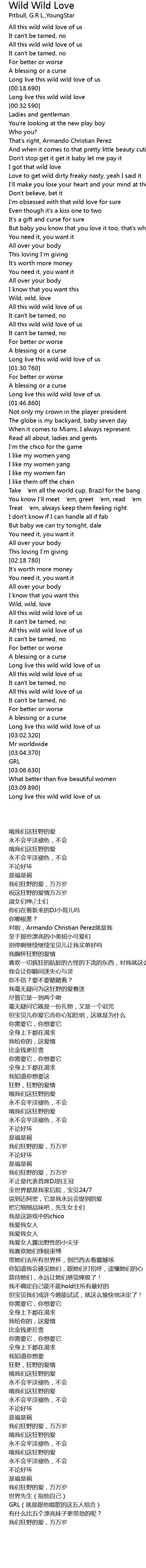 | [01:11.430] | Wild, wild, love |