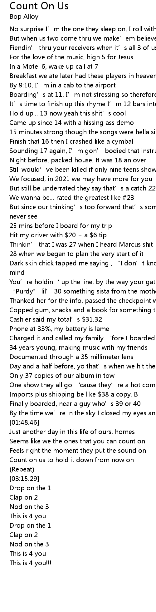 | [00:25.18] | Hold up... 13 now yeah this shit' s cool |