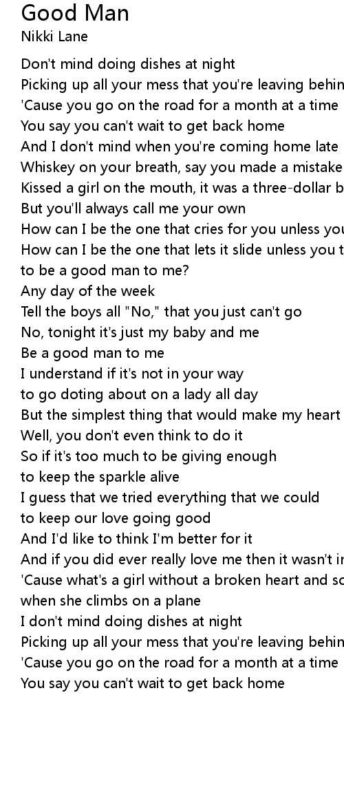 Be a good man to me |