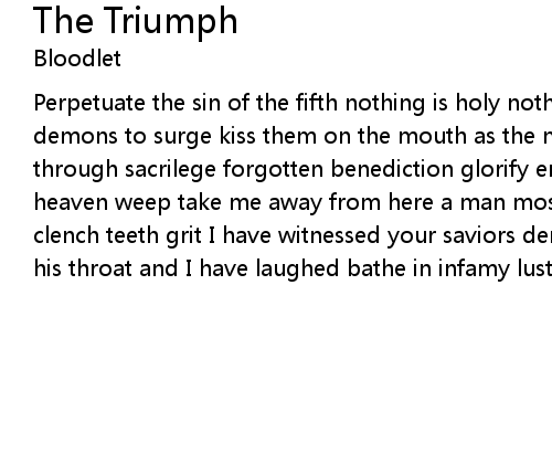 | Perpetuate the sin of the fifth nothing is holy nothing is sacred begging the demons to surge kiss them on the mouth as the martyr is forgotten ascension through sacrilege forgotten benediction glorify embrace as all the angels in heaven weep take me away from here a man most abhorred to the gods my fists clench teeth grit I have witnessed your saviors demise I have watched you slice his throat and I have laughed bathe in infamy lust hypocrisy wretch |