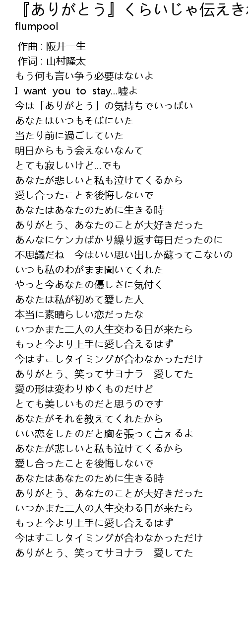 | [00:36.312] | I want you to stay...嘘よ |