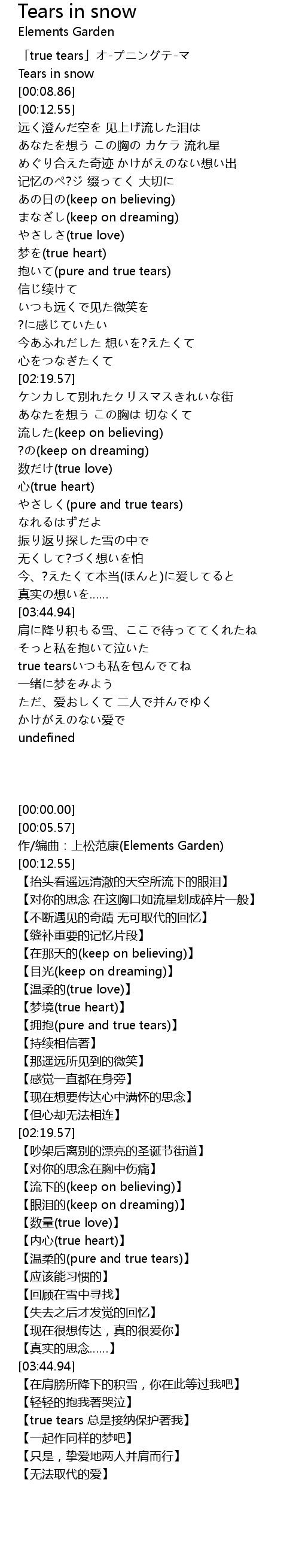 | [04:17.44] | true tearsいつも私を包んでてね |