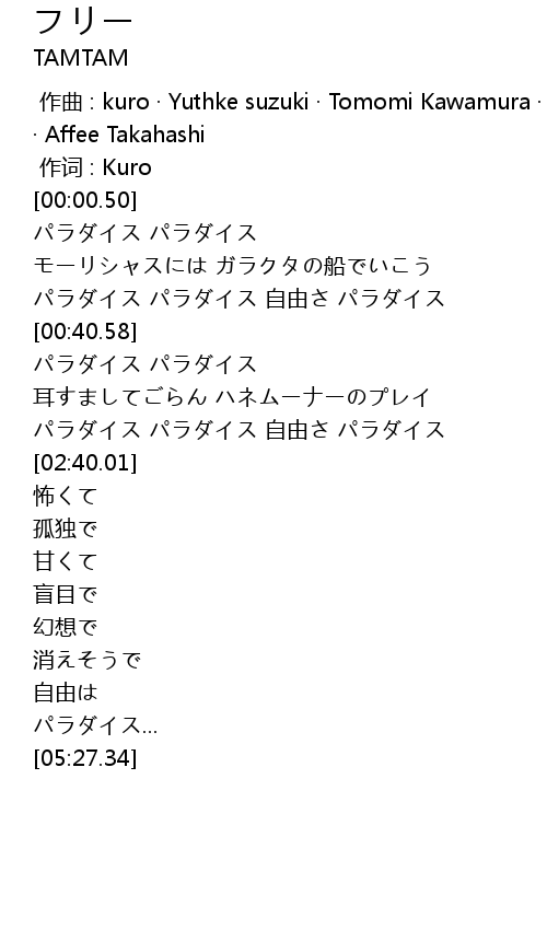 | [02:19.05] | パラダイス パラダイス 自由さ パラダイス |