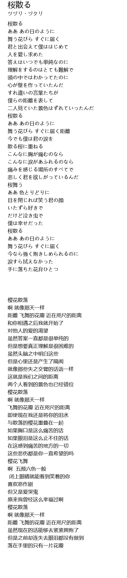 散る桜に重ねる |