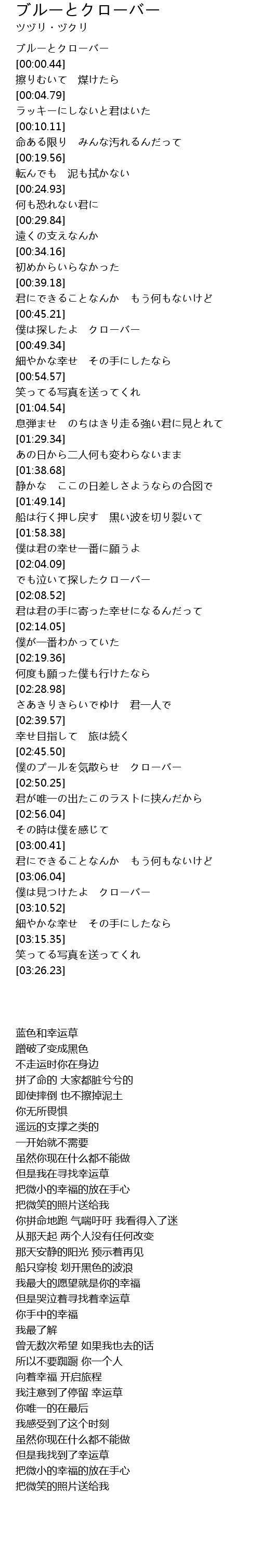 | [00:45.35] | 僕は探したよ クローバー |