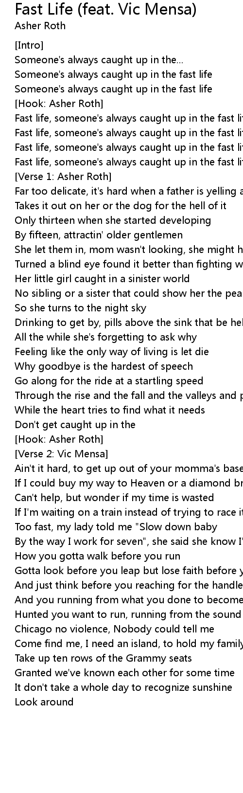 Fast life, someone's always caught up in the fast life |