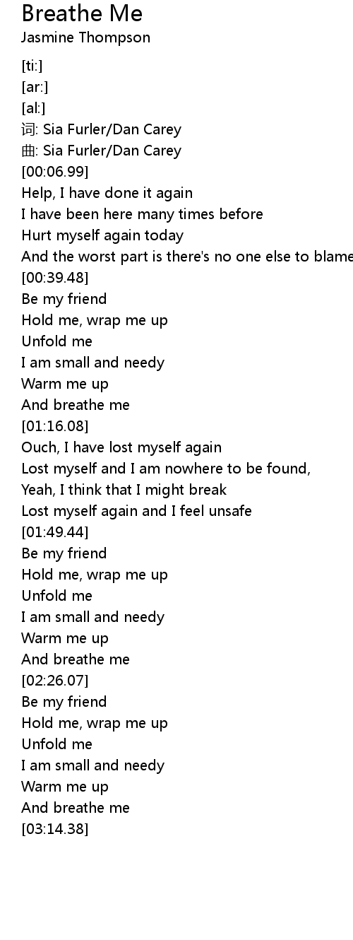 | [02:19.74] | And breathe me |