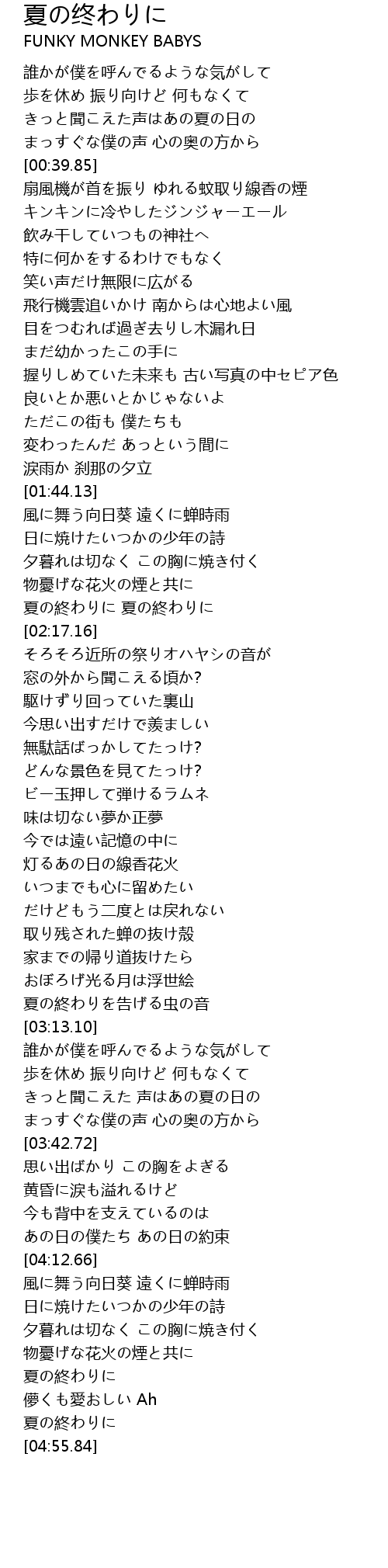 | [02:10.33] | 夏の終わりに 夏の終わりに |