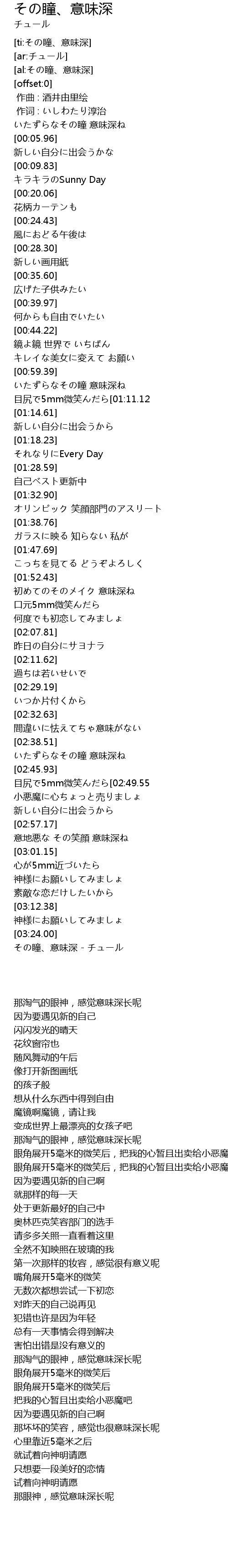| [02:46.55]目尻で5mm微笑んだら[02:49.55] | |
