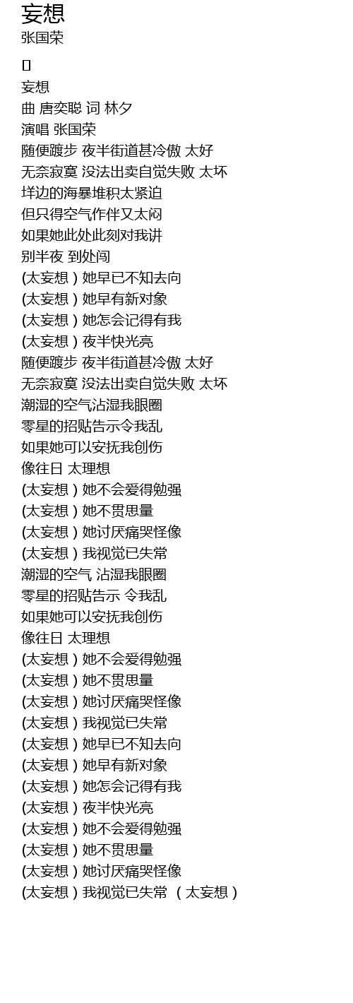 | [03:48.735] | (太妄想)她不贯思量 |