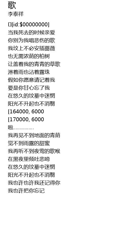 | [00:13.0] | 当我死去的时候亲爱 |