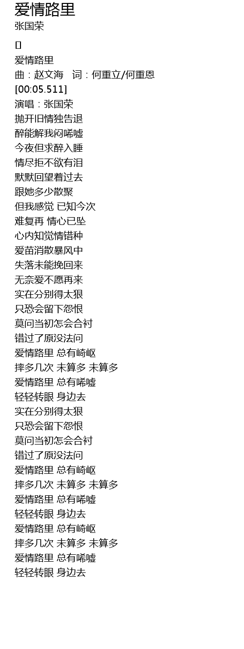 | [03:40.447] | 爱情路里 总有崎岖 |
