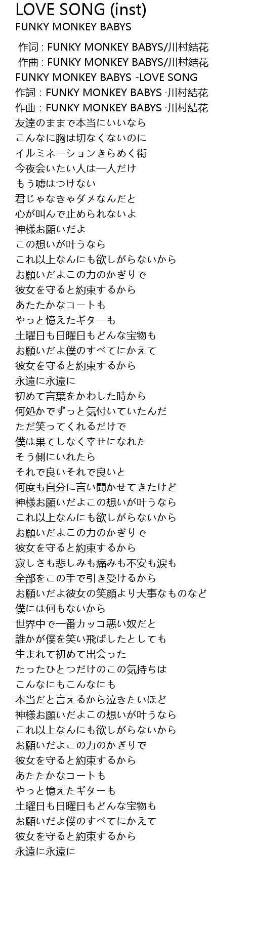 | [00:01.111] | FUNKY MONKEY BABYS LOVE SONG |