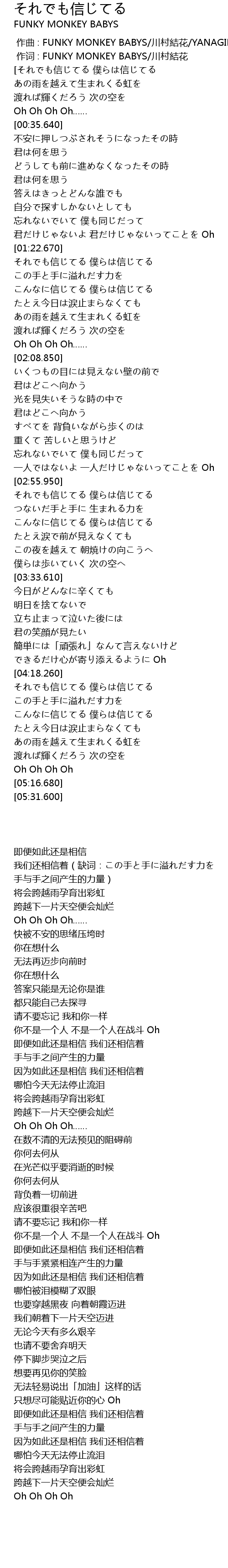 | [00:01.00] | 作词 : FUNKY MONKEY BABYS/川村結花 |