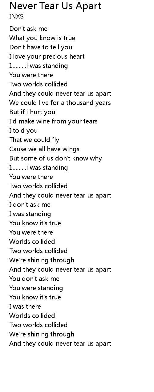 And they could never tear us apart |