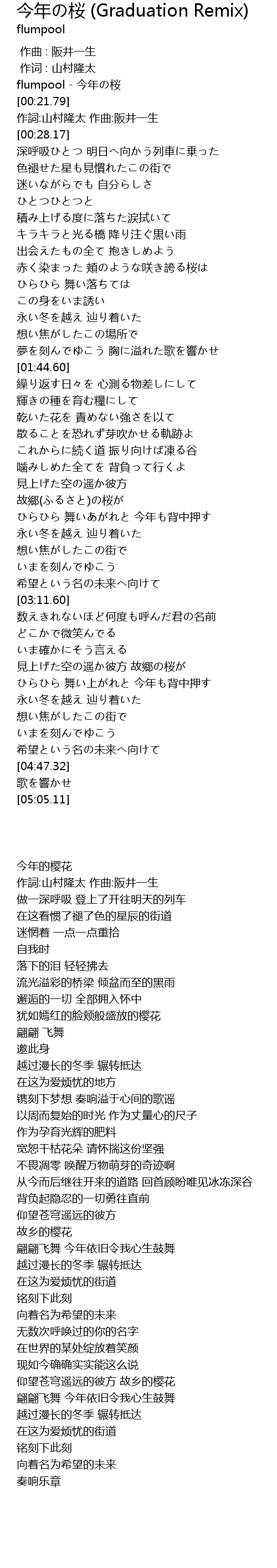 | [00:19.37] | flumpool - 今年の桜 |